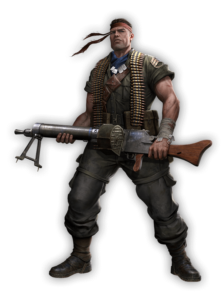 ランドル·ミラーはあらゆる武器や戦闘技術に精通しており、北アフリカ戦線では勇敢さと敵への容赦ない攻撃で知られていた。 彼は鹵獲したマキシム機関銃を使い、数多くのレイヴン軍団との戦闘に参加し、連合軍からは「ウォー·マシン」と呼ばれ、称賛されている。